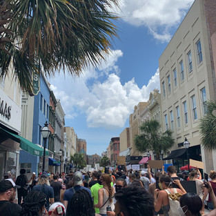 Today I walked the streets of Charleston with my brothers and sisters, protesting the unjust murder of George Floyd by cops in Minneapolis. The protest itself was beautiful. Walking through the historic streets of Downtown Charleston while holding signs and chanting "Black Lives Matter! Black Lives Matter! Black Lives Matter!," for the first time in a while I felt optimistic for the future of America. Seeing these strong, empowered black men and women standing up for their rights and speaking out against injustice while framed by locations of horrible cruelty against slaves created an unimaginable setting for such an important day. Protestors patiently waited for cops to unblock the streets, chanting and refusing to do any harm; people placed flowers and signs along the Mother Emanuel Church, the site of a former hate crime that killed 9 black souls in 2015; donning masks and gloves, we marched through the streets demanding change.